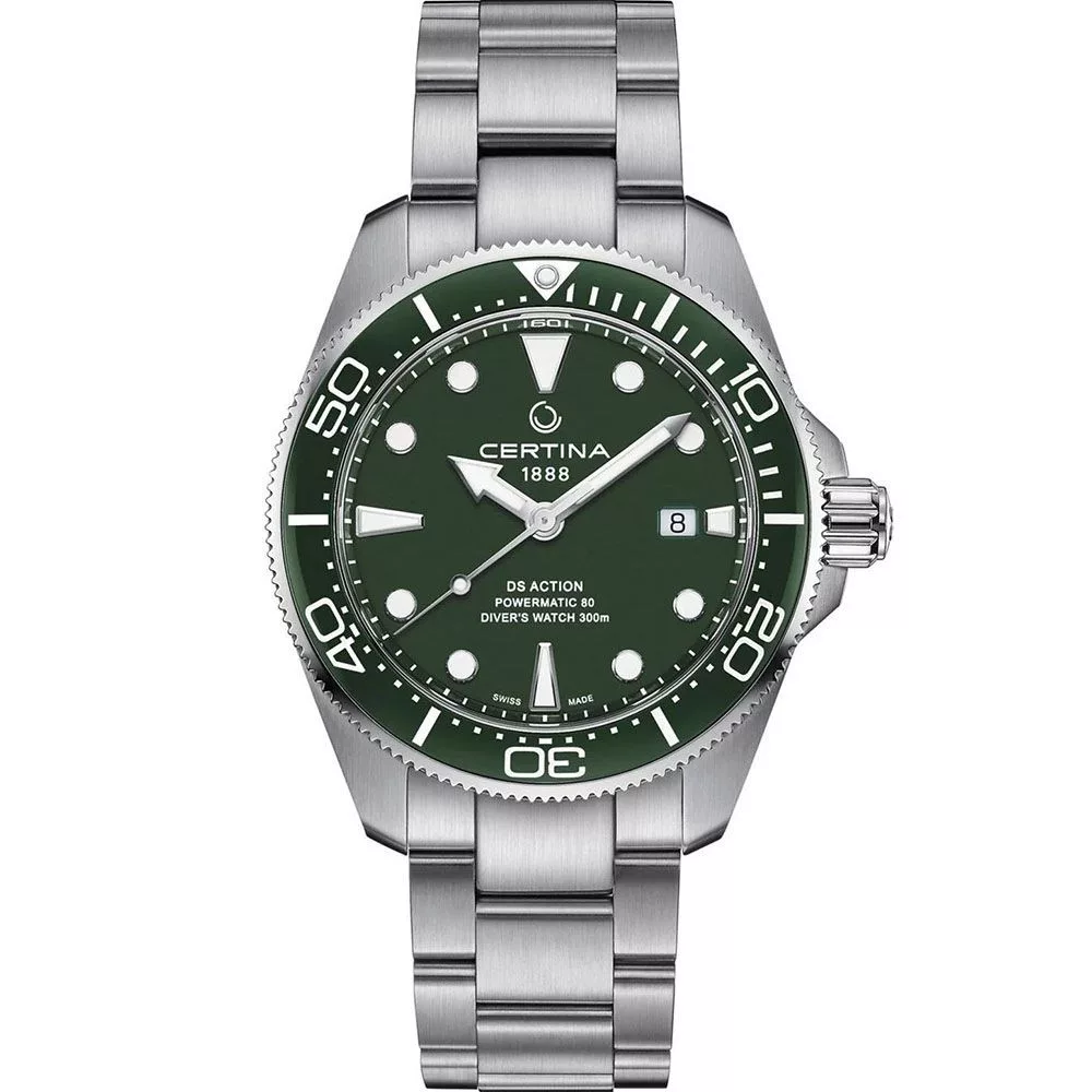 Il materiale della cassa dell'orologio Certina DS Action Diver orologio da uomo C032.607.11.091.00 è acciaio inossidabile, il suo colore è argento, il materiale del cinturino è acciaio inossidabile e il suo colore è argento. Il diametro della cassa dell'orologio è 43 mm, la sua forma è ruota. Il vetro dell'orologio è zaffiro (antigraffio), il suo meccanismo è automatico e la sua resistenza all'acqua è 30 atm (300 m) (adatto per le immersioni).