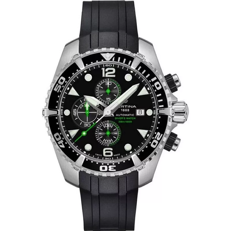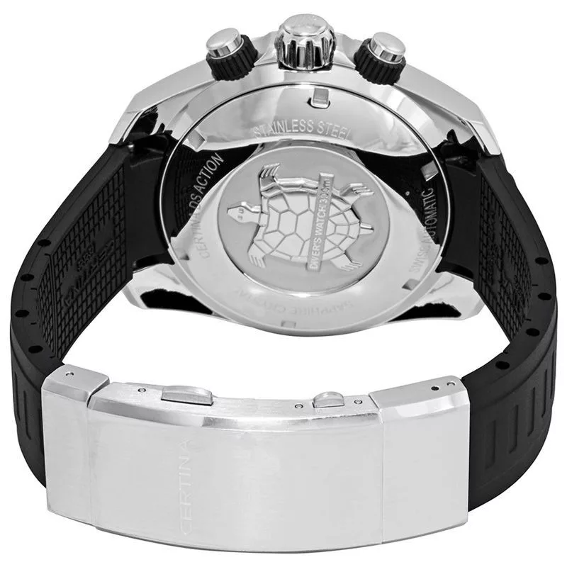 Il materiale della cassa dell'orologio Certina DS Action orologio da uomo C032.427.17.051.00 è acciaio inossidabile, il suo colore è argento, il materiale del cinturino è silicio e il suo colore è nero. Il diametro della cassa dell'orologio è 46 mm, la sua forma è ruota. Il vetro dell'orologio è zaffiro (antigraffio), il suo meccanismo è automatico e la sua resistenza all'acqua è 30 atm (300 m) (adatto per le immersioni).
