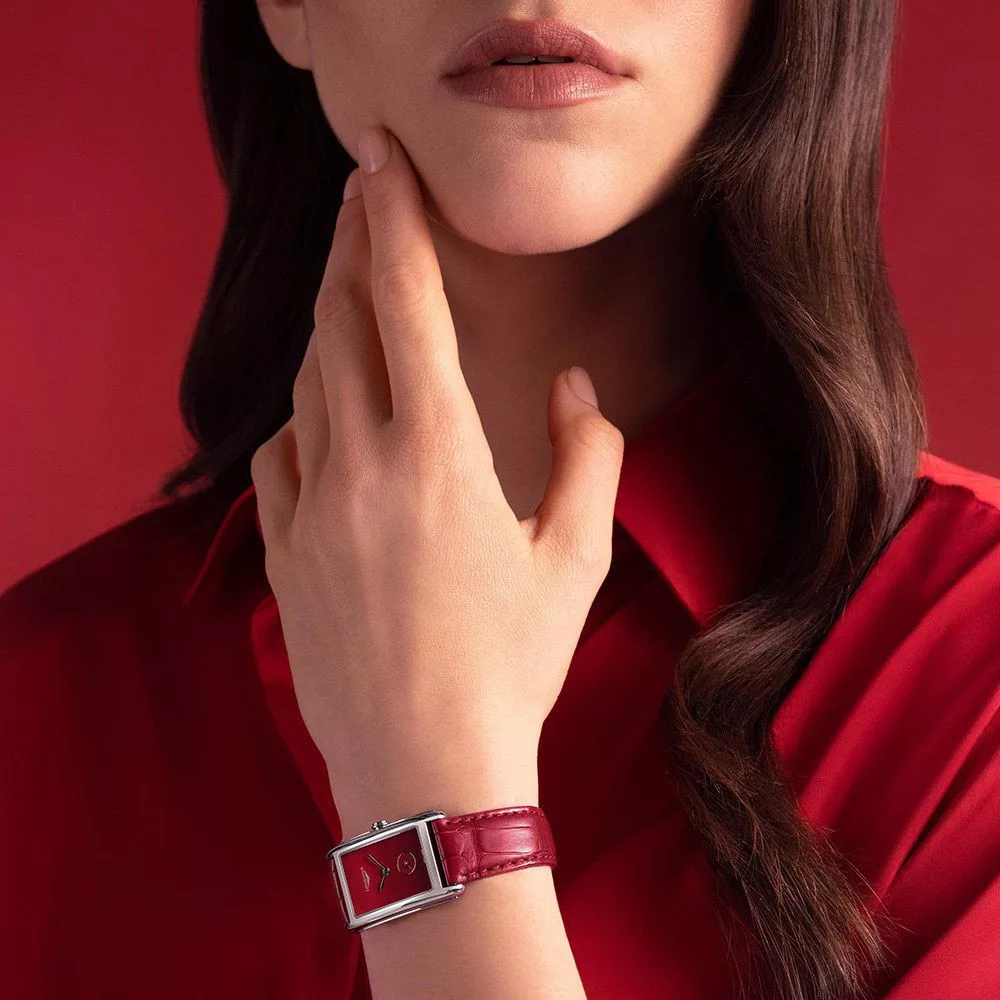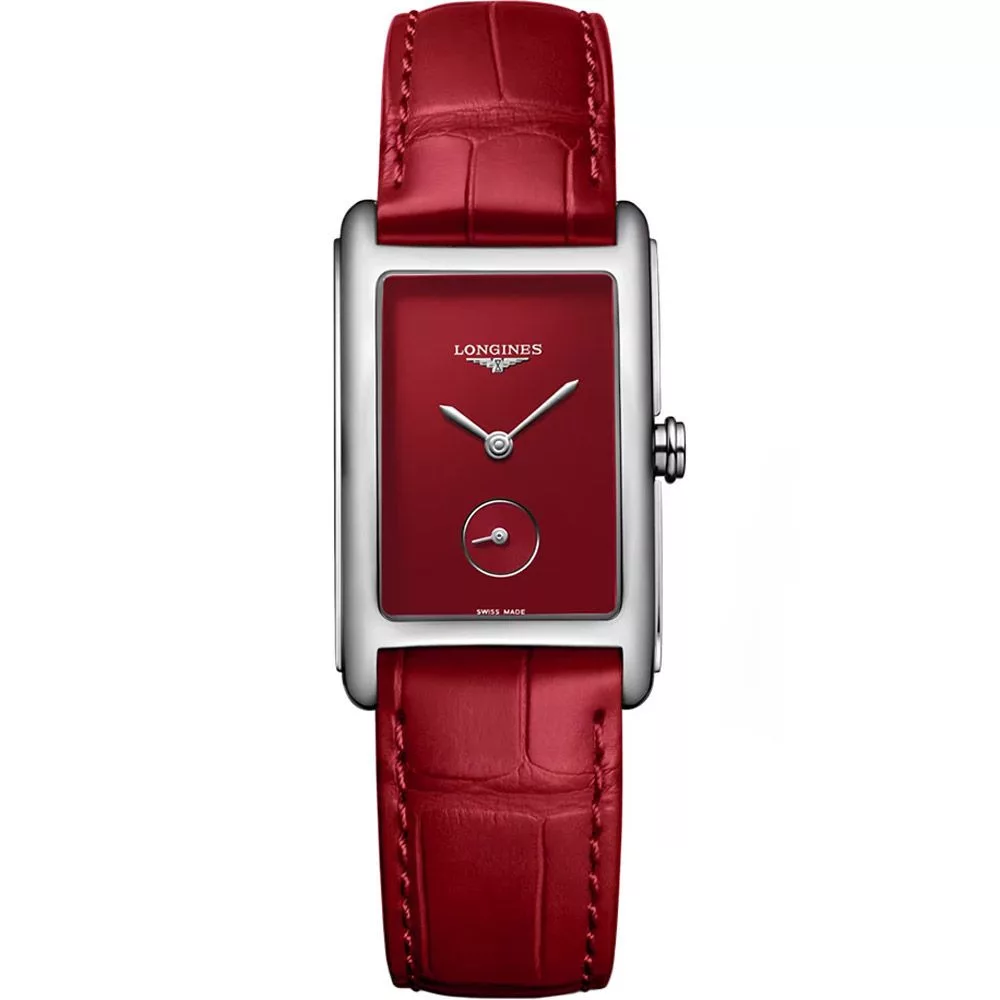 Il materiale della cassa dell'orologio Longines DolceVita orologio da donna L5.512.4.91.2 è acciaio inossidabile, il suo colore è argento, il materiale del cinturino è pelle e il suo colore è rosso. Il diametro della cassa dell'orologio è 35 mm, la sua forma è ruota. Il vetro dell'orologio è zaffiro (antigraffio), il suo meccanismo è quarzo e la sua resistenza all'acqua è 3 atm (30 m) (senza gocciolamento).