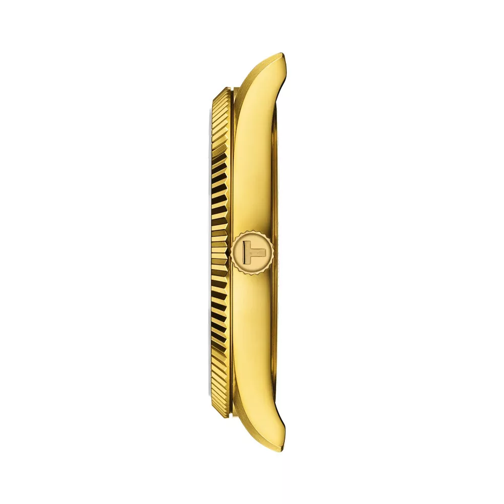Il materiale della cassa dell'orologio Tissot Classic Contemporary Ballade orologio da uomo T156.410.33.051.00 è acciaio inossidabile, il suo colore è oro, il materiale del cinturino è acciaio inossidabile e il suo colore è oro. Il diametro della cassa dell'orologio è 40 mm, la sua forma è ruota. Il vetro dell'orologio è zaffiro (antigraffio), il suo meccanismo è quarzo e la sua resistenza all'acqua è 10 atm (100 m) (adatto per il nuoto).