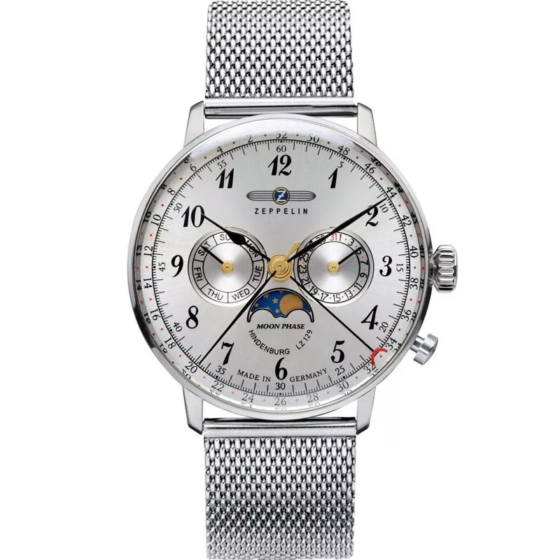 Il materiale della cassa dell'orologio Zeppelin LZ129 Hindenburg orologio da uomo 7036M-1 è acciaio inossidabile, il suo colore è argento, il materiale del cinturino è acciaio inossidabile e il suo colore è argento. Il diametro della cassa dell'orologio è 40 mm, la sua forma è ruota. Il vetro dell'orologio è cristallo (difficile da graffiare), il suo meccanismo è quarzo e la sua resistenza all'acqua è 3 atm (30 m) (senza gocciolamento).